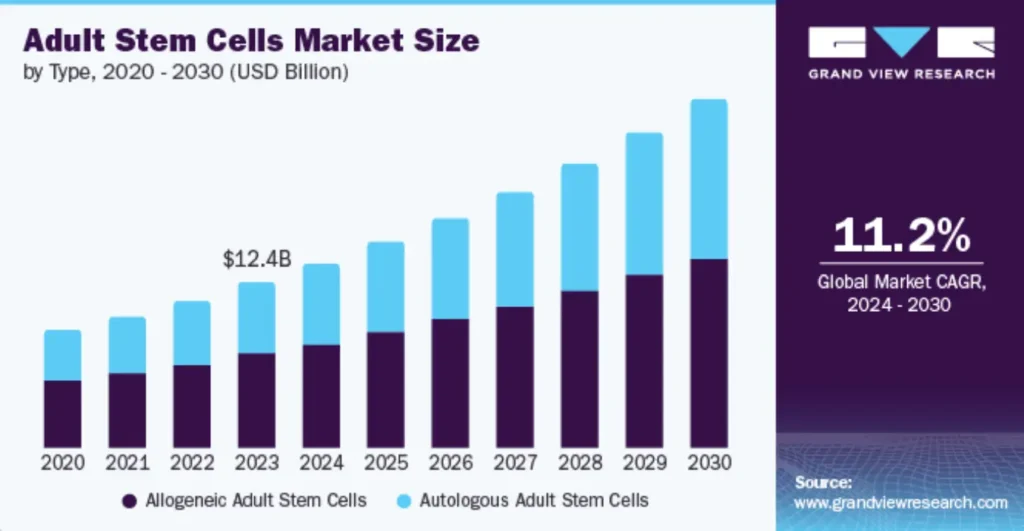 The adult stem cells market is projected to reach $12.4 billion by 2023, with steady growth to 2030 at a CAGR of 11.2%. This trend highlights the increasing demand for regenerative medicine solutions like those offered by Chiron Therapeutics.
